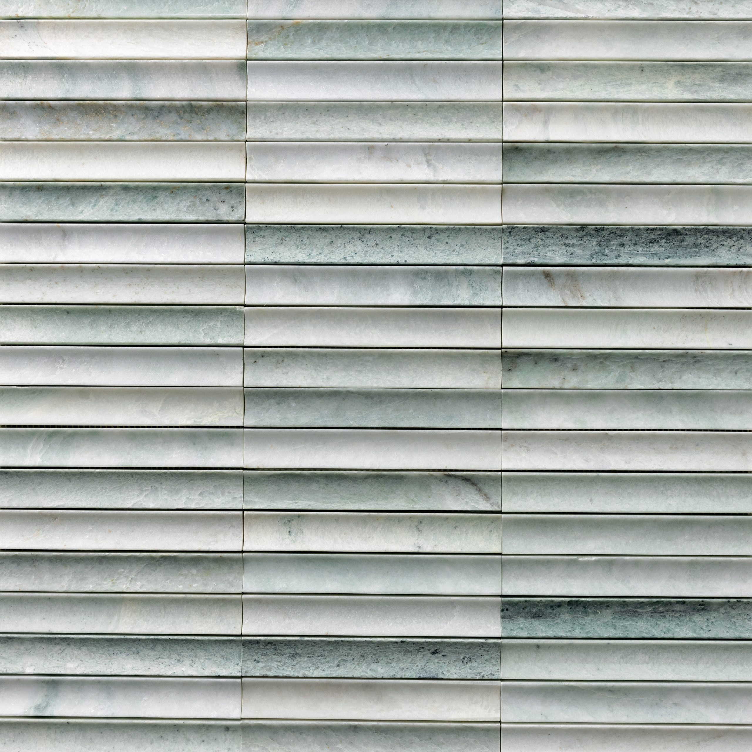 Porter Jade Concave Mosaics form a striking focal point across the bar surfaces, their smooth honed finish and gentle curvature reflecting light with subtle movement.