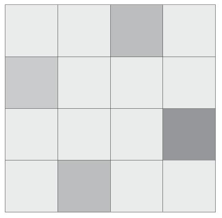Clearly distinguishable differences in texture and/or pattern within similar colours.